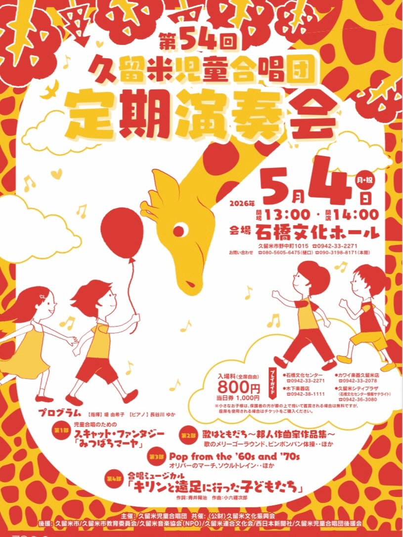 後援 : 久留米市/久留米市教育委員会/久留米音楽協会(NPO)/久留米連合文化会/西日本新聞社/久留米児童合唱団講演会