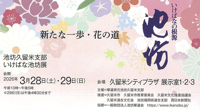 後援:久留米市 久留米市教育委員会 久留米文化推進協議会 久留米連合文化会 池坊福岡県連合支部 西日本新聞社